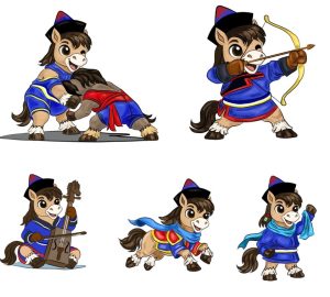 Изначально она представила на конкурс пять разнообразных изображений талисмана, на одном из которых веселый конь Аргатай был в монгольском головном уборе. По просьбе экспертов автор доработала образ коня.